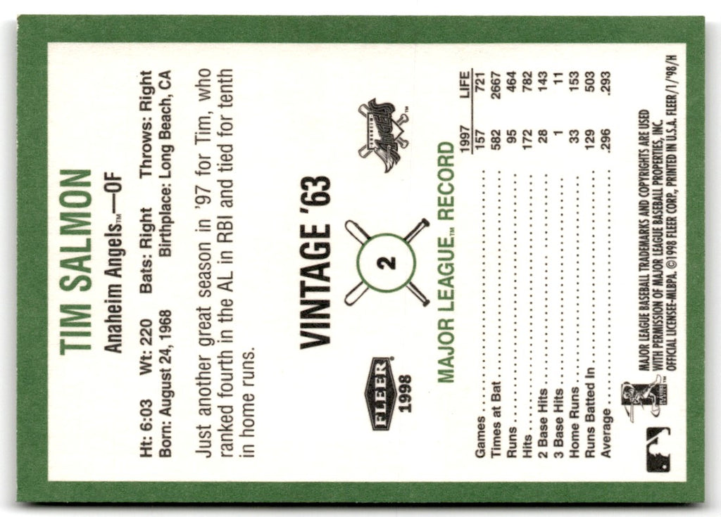 Description: 1998 Score Anaheim Angels Tim Salmon #6
