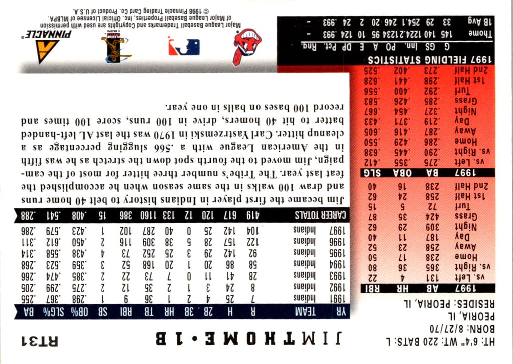 Description: 1998 Score Rookie & Traded Jim Thome #RT31