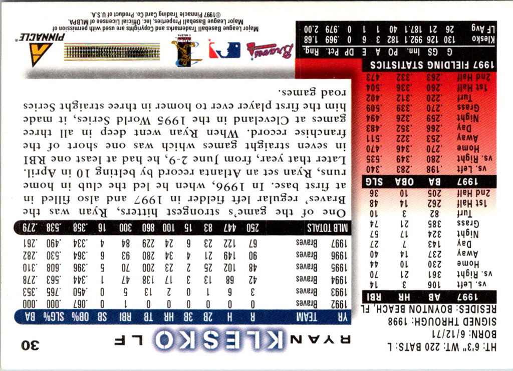 Description: 1998 Score Ryan Klesko #30