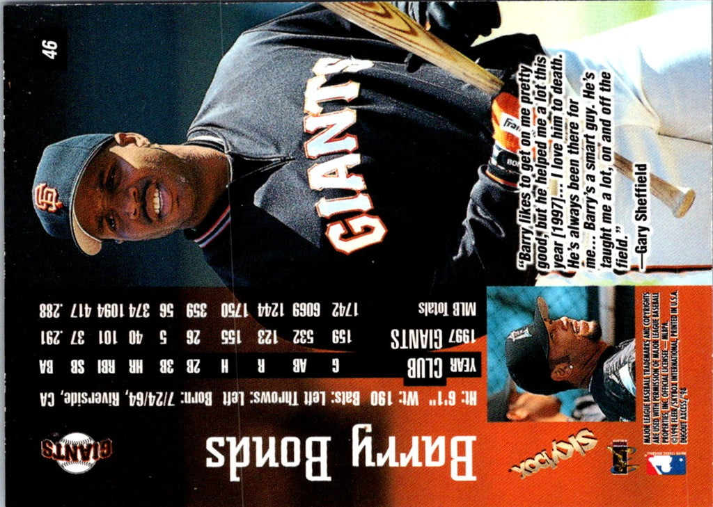 Description: 1998 SkyBox Dugout Axcess Barry Bonds #46