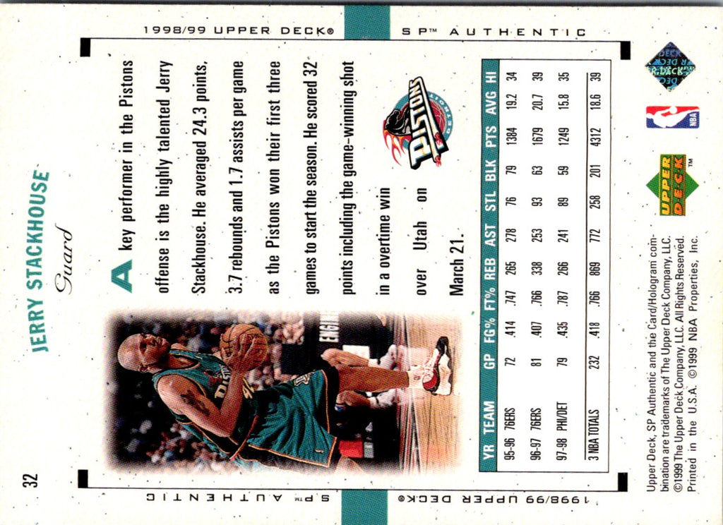 1998 SP Authentic Jerry Stackhouse #32