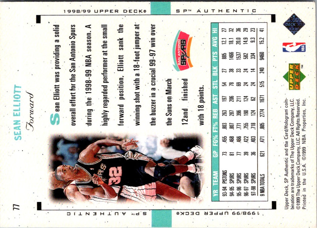 1998 SP Authentic Sean Elliott #77
