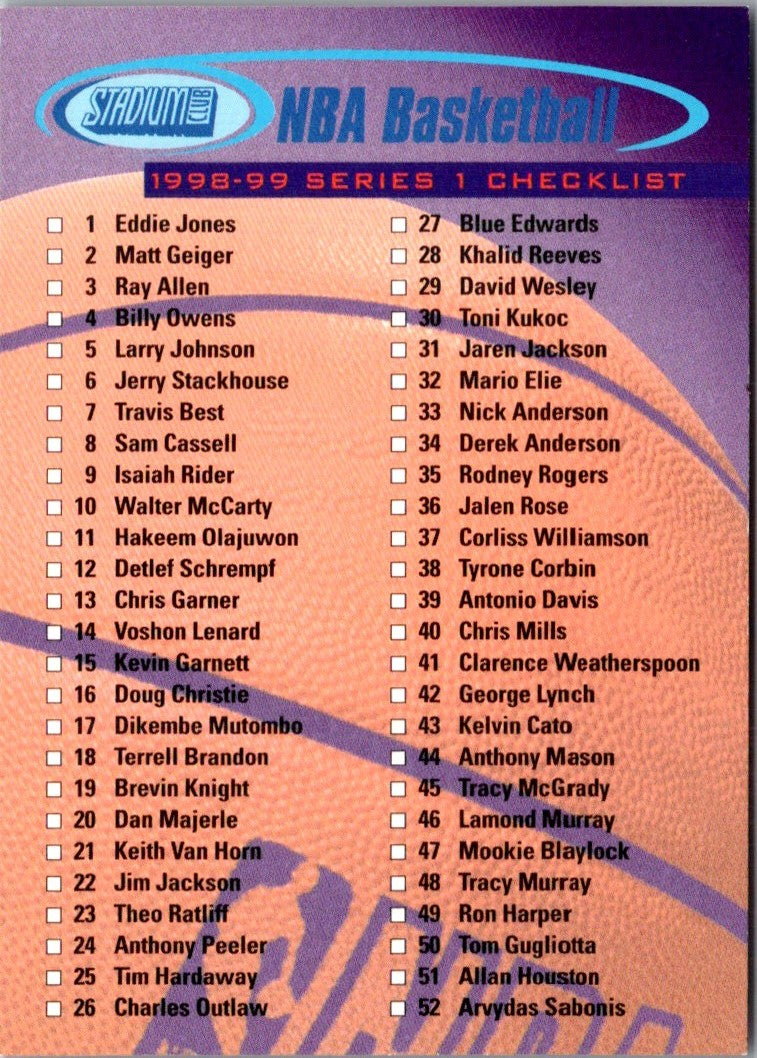 Description: 1998 Stadium Club Checklists Checklist Series 1 #1 Hobby #H1