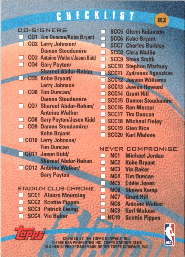 Description: 1998 Stadium Club Checklists Checklist Series 1 #2 Retail #R2