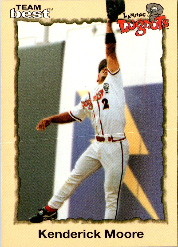This 1998 Team Best Kendrick Moore #32 Lansing Lugnuts jersey is the perfect way to show your love for the Lansing Lugnuts and your favorite player. The jersey features a classic blue and yellow color scheme with "K. Moore #32" printed on the back. The fabric is lightweight and breathable, making it comfortable and perfect for game days. The jersey also has a bold Lansing Lugnuts logo on the front, making it a great addition to any baseball fan's wardrobe. Get your hands on this stylish jersey today and show your team spirit!