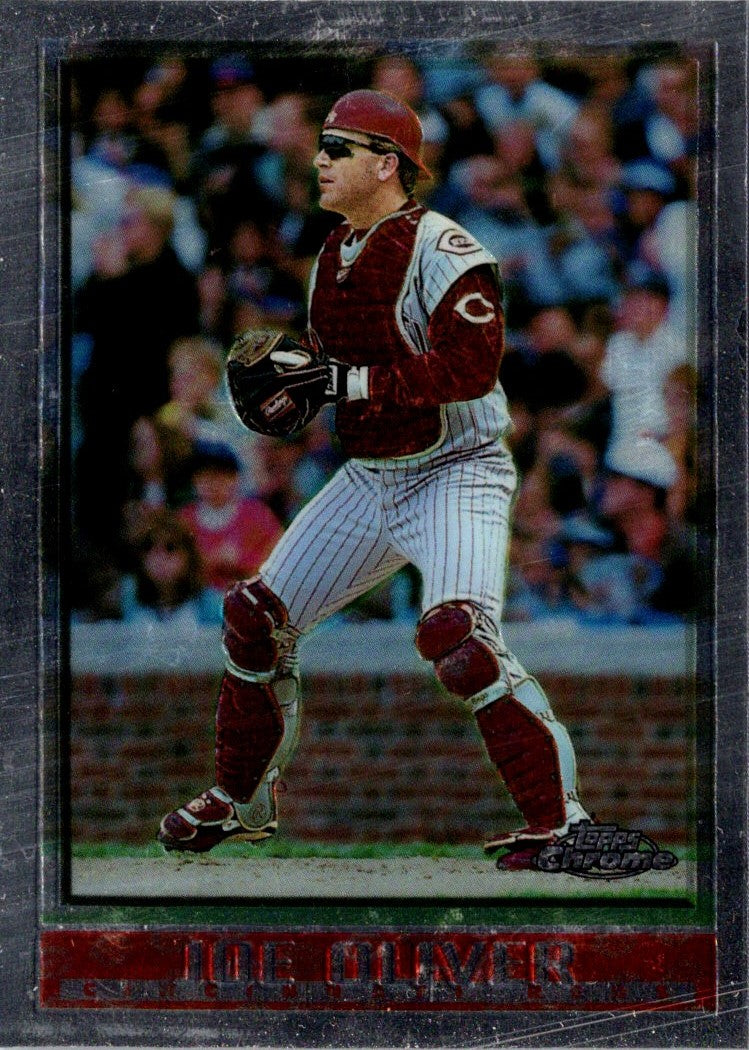 This 1998 Topps Chrome Joe Oliver #194 card from the Cincinnati Reds is a must-have for any collector. The card is in near-mint condition, with crisp colors and sharp corners. It features Oliver, the former All-Star catcher for the Reds, in his iconic stance at the plate. It's the perfect way to add a piece of Reds history to your collection. Don't miss out on this essential card for any fan of the Cincinnati Reds!