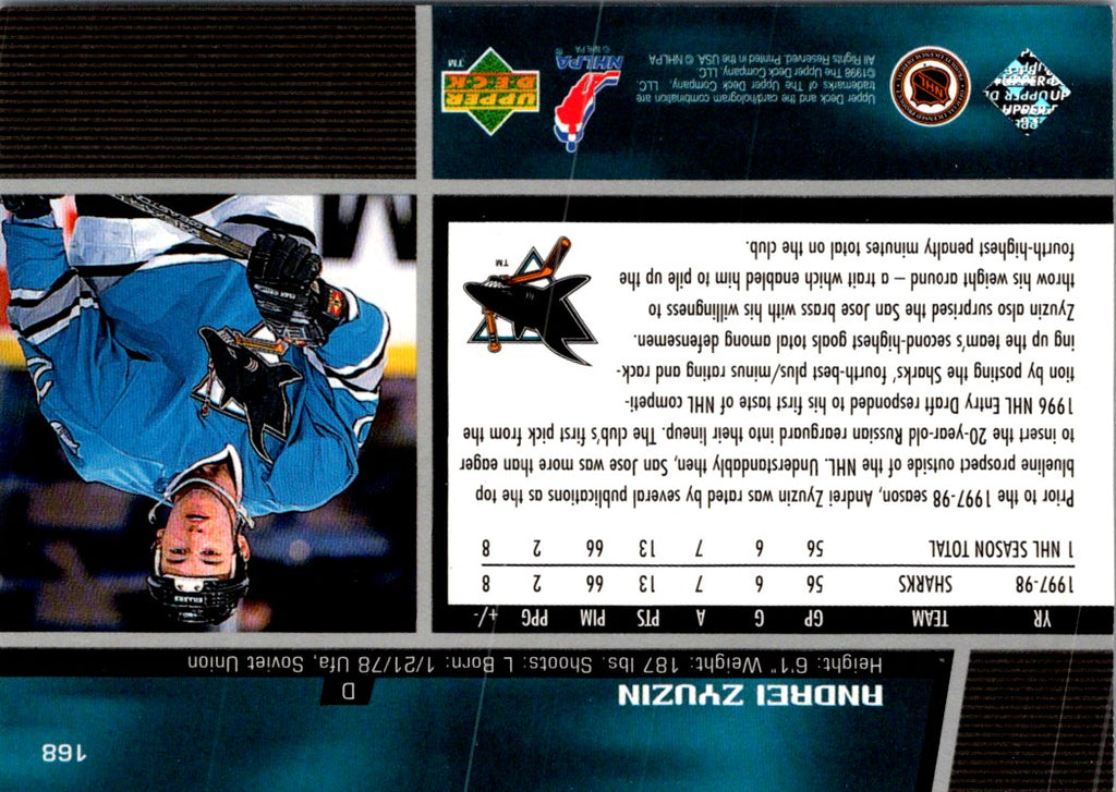 This 1998 Upper Deck Andrei Zyuzin #168 San Jose Sharks card is a must-have for any hockey fan. It features a classic image of Andrei in action, complete with the team’s colors and logo. The card is professionally printed on quality card stock and the edges are crisp and clean. It’s a great way to show off your San Jose Sharks pride and honor the great Andrei Zyuzin. Add this card to your collection today!
