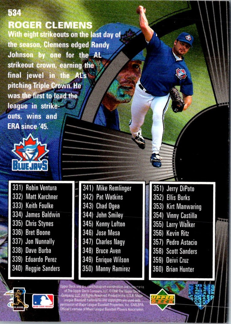 Description: 1998 Upper Deck Roger Clemens #534