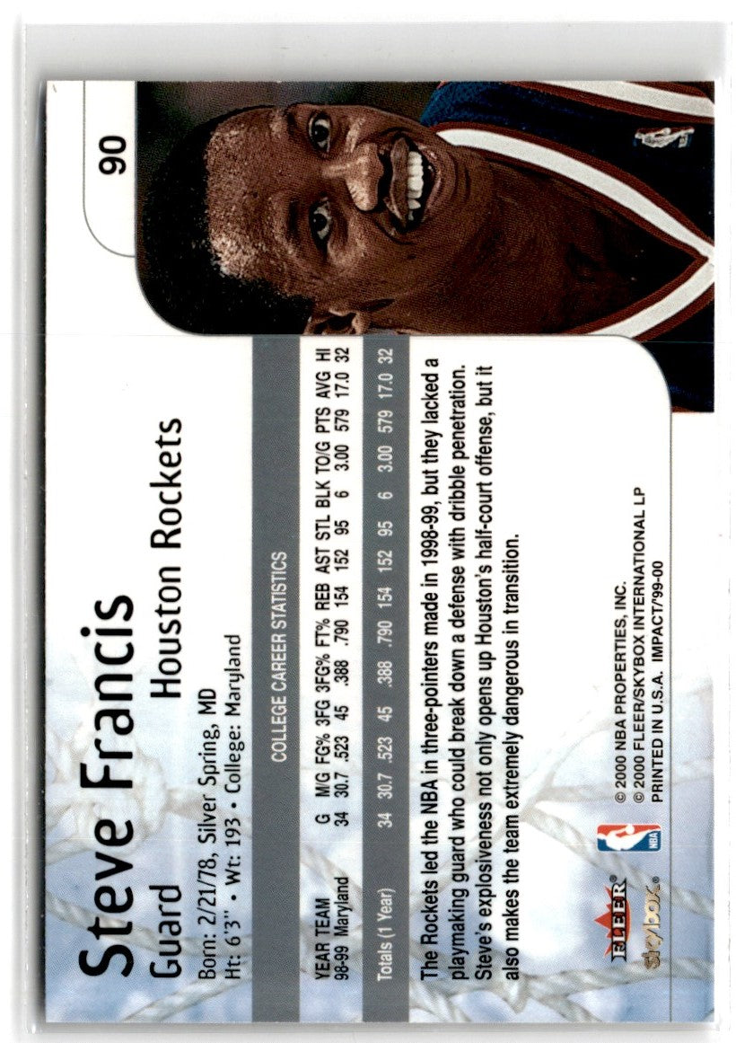 Description: 2000 Fleer Tradition Season Pass Steve Francis #6