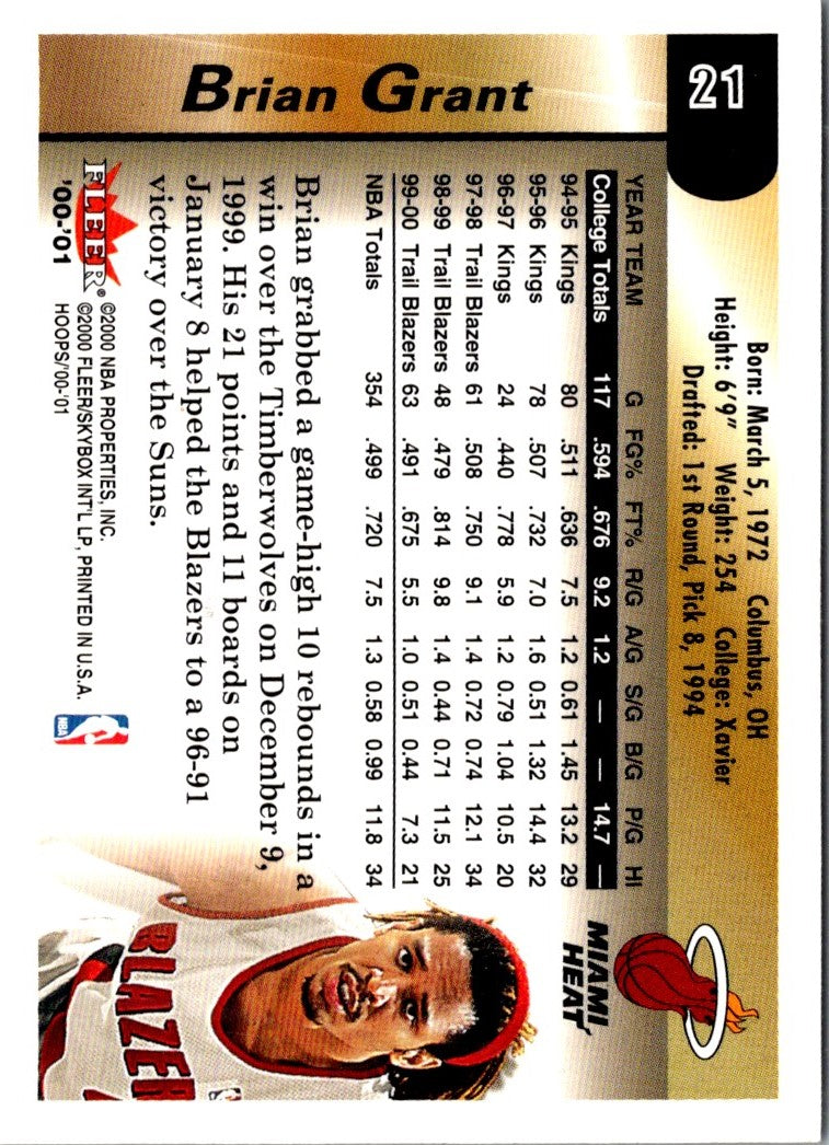 This 2000 Hoops Hot Prospects Brian Grant #21 Miami Heat card is a must-have for any serious basketball card collector. The card features a full-color action shot of Grant in a Miami Heat uniform, with his name and number printed on the front. On the back, you'll find detailed stats and information about his time with the Heat. It's a great way to show your support for one of the most popular players in Heat history! Add this card to your collection today and it will be an invaluable piece of your basketball card collection for years to come.