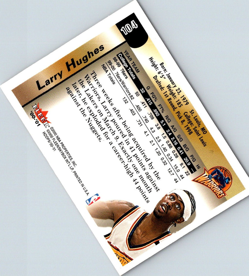 This 2000 Hoops Hot Prospects Larry Hughes #104 Golden State Warriors card is the perfect addition to any basketball card collection. It features a vibrant full-color photo of Hughes in action and is printed on glossy card stock. The card also features a detailed stat line that highlights his impressive rookie season. This card is a must-have for any Larry Hughes fan or Golden State Warriors fan. Add it to your collection today!