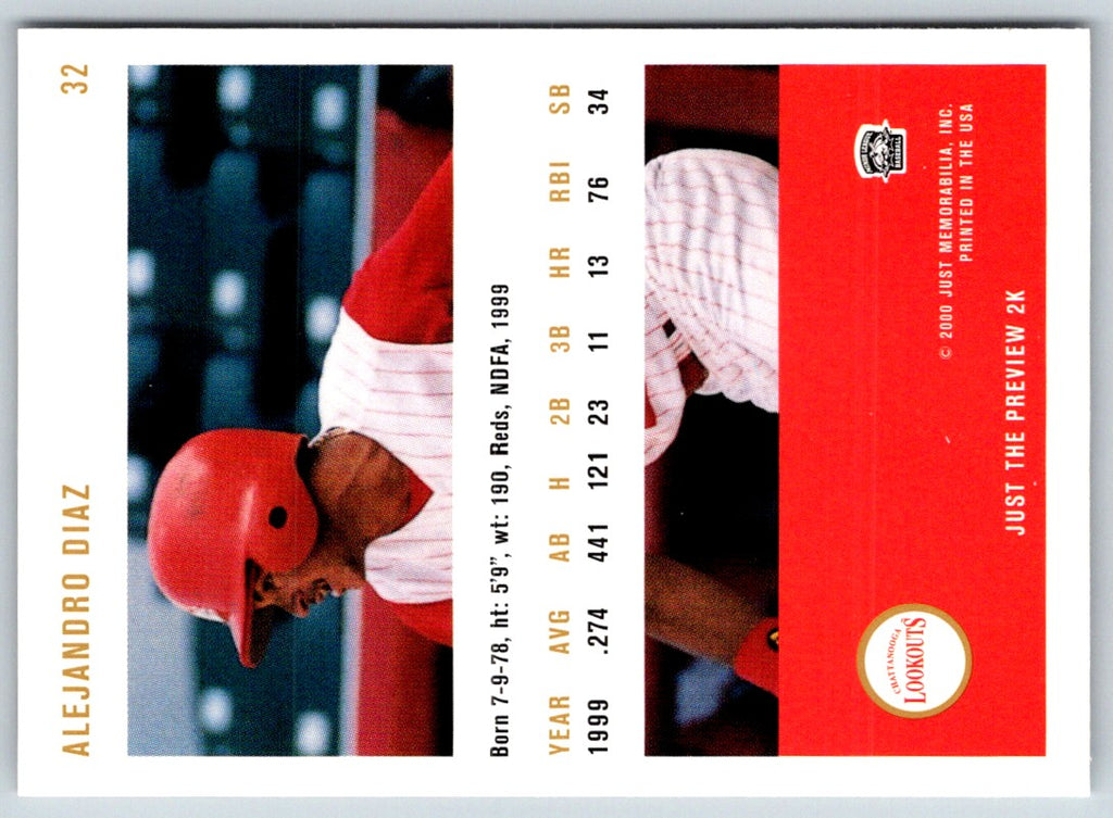 This 2000 Just Alejandro Diaz #32 Chattanooga Lookouts card is a must-have for any baseball card collector! It features an action shot of the talented Lookouts player, and is perfect for any collection. The card is in pristine condition, and its bold colors make it stand out. With a dynamic design, this card is sure to become a prized possession. Add it to your collection today and show your love for the Chattanooga Lookouts!