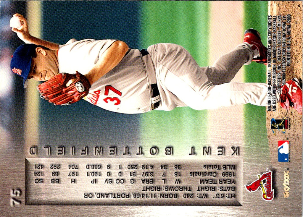This 2000 Metal Kent Bottenfield #75 St. Louis Cardinals is a must-have for any baseball fan! This card features a glossy finish and vibrant colors on durable metal construction. It's perfect for display in your office or home and is sure to be a conversation starter. With its detailed design, this card is sure to capture the attention of any fan. Add some Cardinals pride to your collection with this one-of-a-kind card!