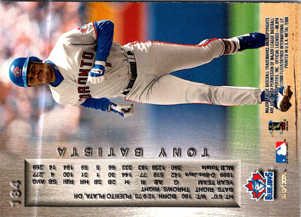 This classic Tony Batista #184 Toronto Blue Jays 2000 Metal card is the perfect item for any baseball fan! This card features a full-color glossy photo of Batista in his iconic Jays uniform, and is a great way to commemorate the career of this beloved player. This card also features a detailed card back with stats and other information about Batista's career. Add this card to your collection for a chance to own a piece of Toronto Blue Jays history!