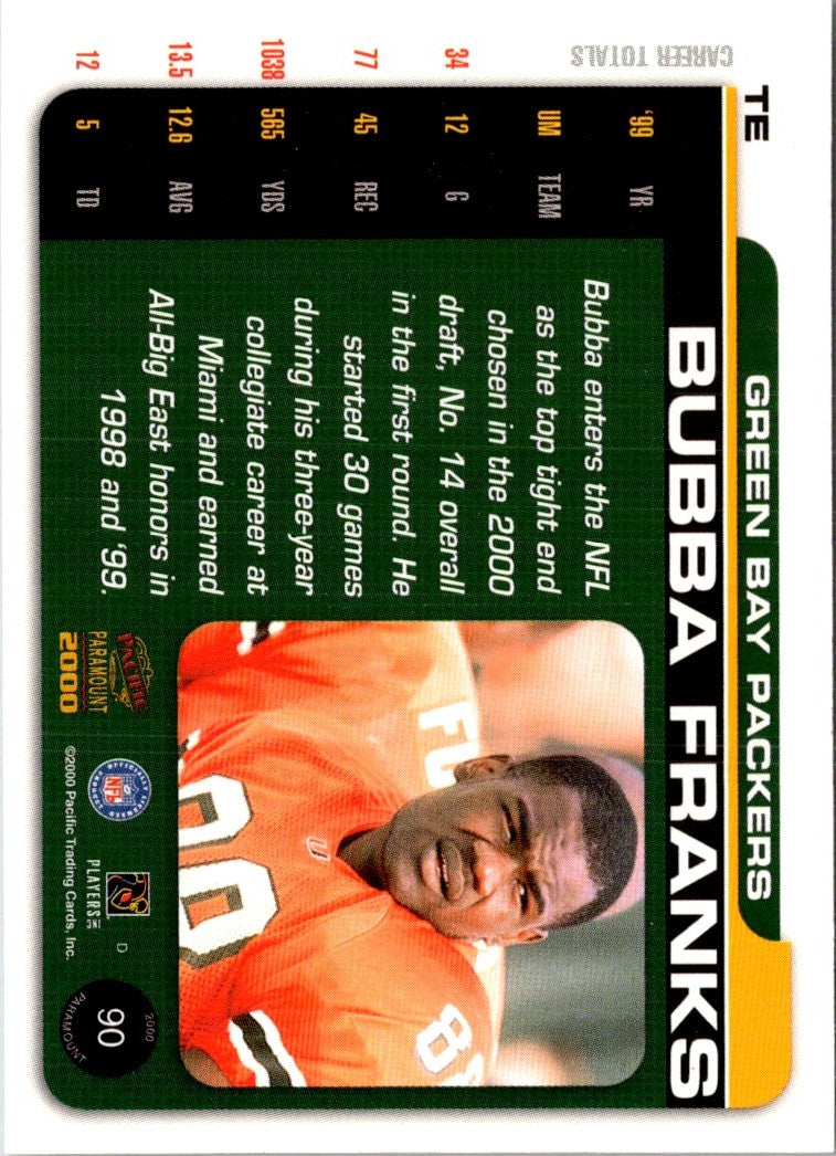 Description: 2000 Pacific Paramount Bubba Franks #90 Rookie