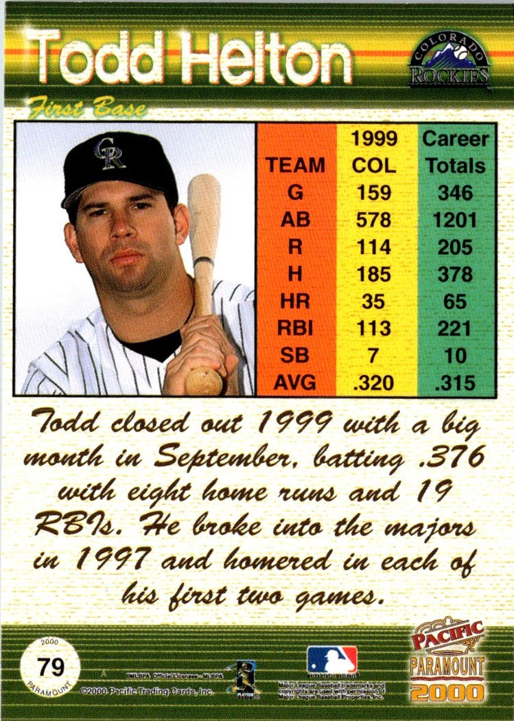 Description: 2000 Pacific Paramount Ruby Todd Helton #79