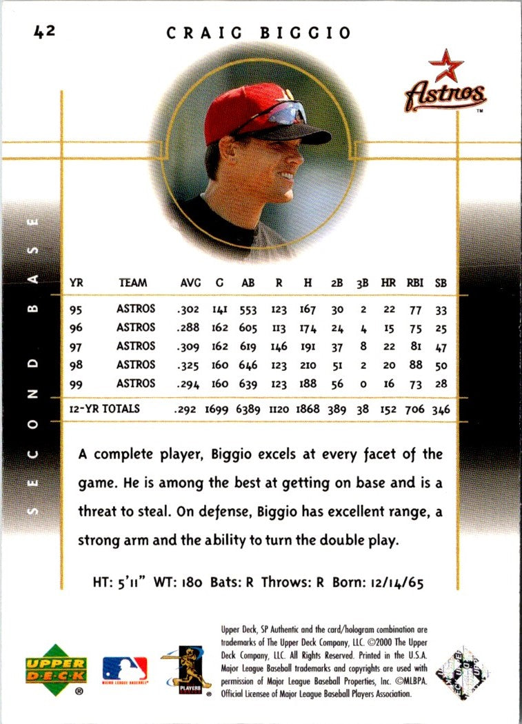 Description: 2000 SP Authentic Craig Biggio #42