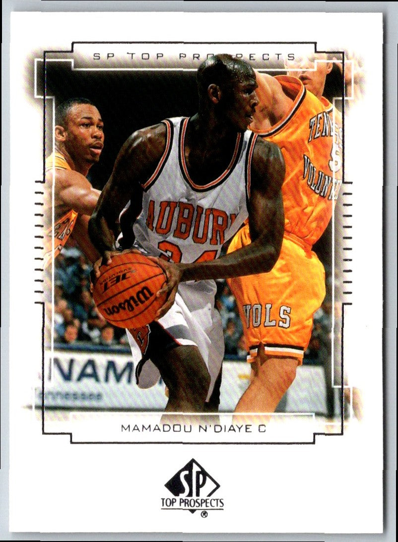 This 2000 SP Top Prospects Mamadou N'Diaye #39 Auburn Tigers card showcases the dynamic center from Senegal in his college days. N'Diaye was a two-time All-SEC selection, a two-time SEC Defensive Player of the Year, and a two-time All-American. He averaged double-figures in points and rebounds in all four of his collegiate seasons. This card captures the impact he had on the court and is a must-have for any Tigers fan's collection. Get your hands on this piece of college basketball history before it's gone!