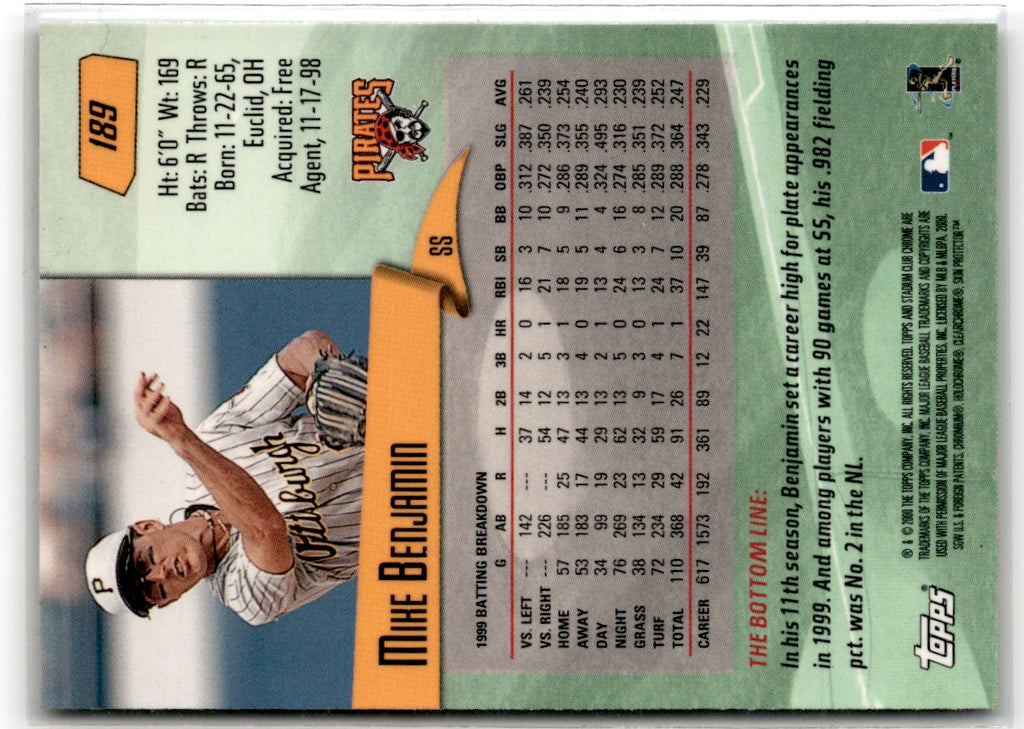 Description: 2000 Stadium Club Chrome Mike Benjamin #189