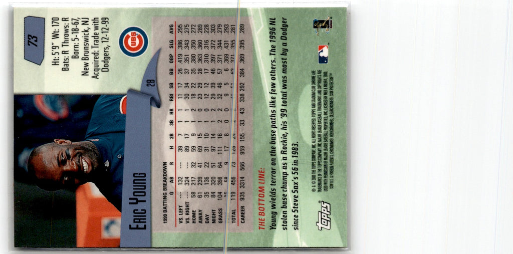 This 2000 Stadium Club Eric Young #73 Los Angeles Dodgers card is a must-have for any serious Dodgers fan or collector. Featuring an action photo of Young in his Dodger uniform, the card is in mint condition and a great addition to any collection. The card is printed on high-quality card stock and the edges and corners are sharp and crisp. It's a great way to show your Dodger pride and commemorate the career of this LA great. Add this card to your collection today!