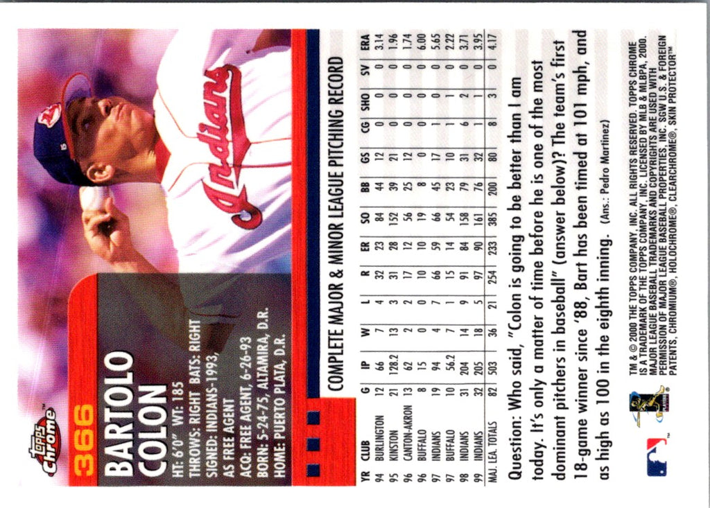 Description: 2000 Topps Bartolo Colon #366