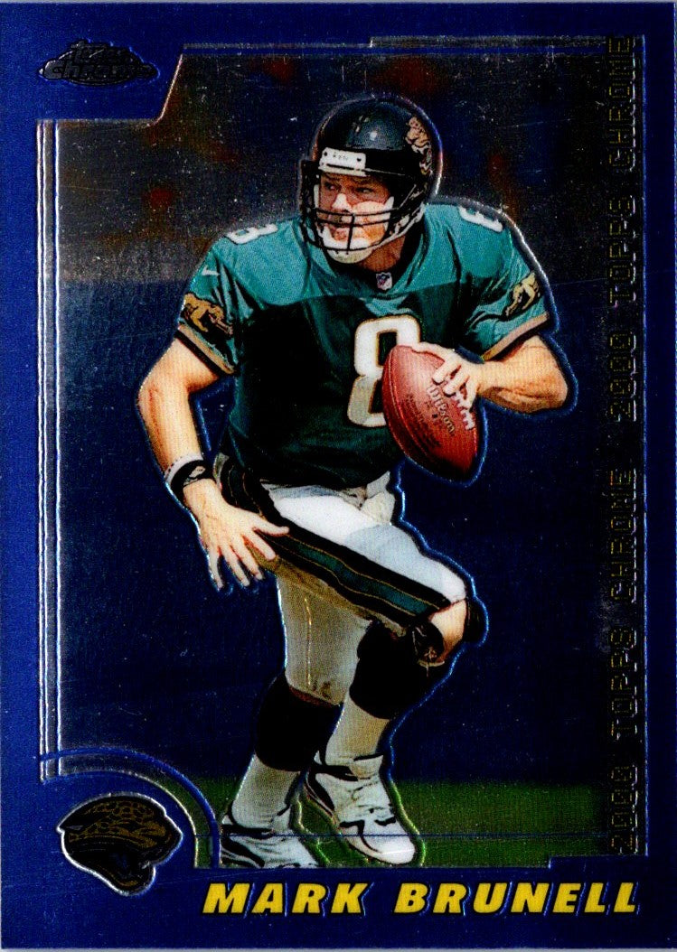 This 2000 Topps Chrome Mark Brunell #35 card features a classic image of the Jacksonville Jaguars quarterback in action during the 2000 football season. With its brilliant chrome finish, this card is sure to be a cherished addition to any collection. The vivid colors and sharp detail make this card stand out from the crowd. Add this card to your collection today and celebrate one of the greatest quarterbacks of all time.