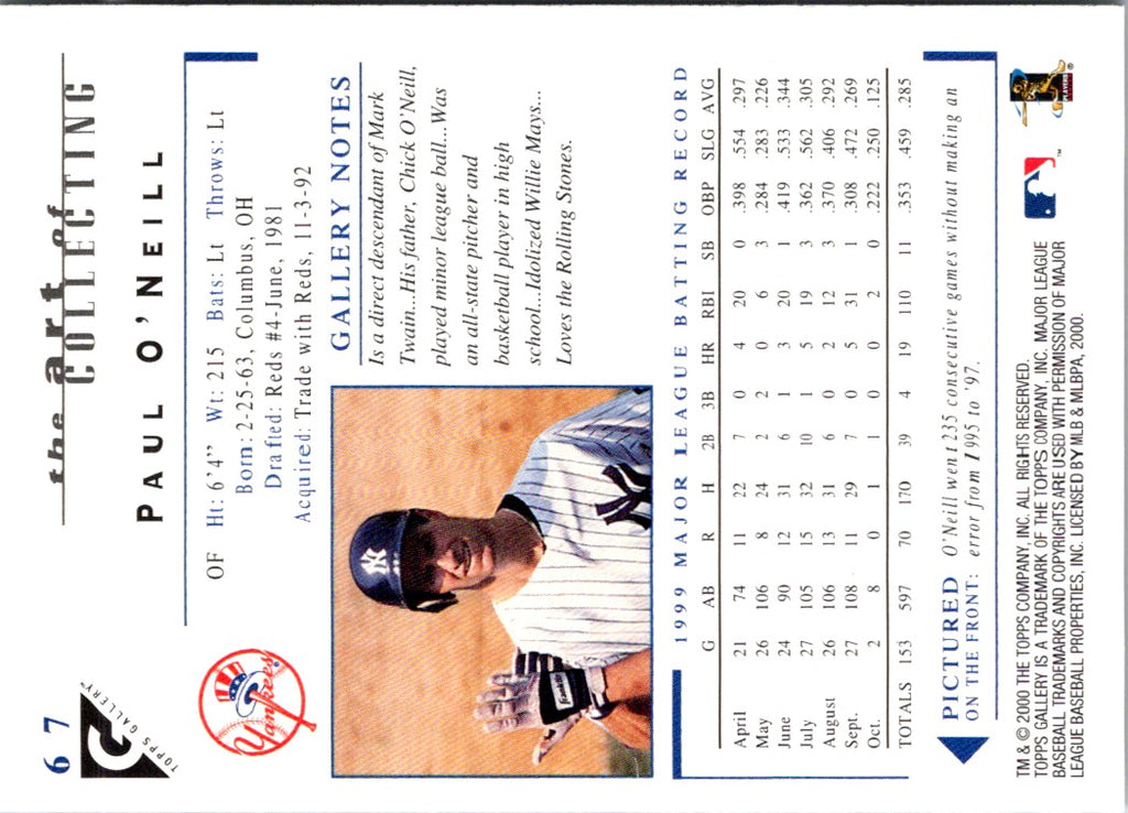 Description: 2000 Topps Gallery Paul O'Neill #67