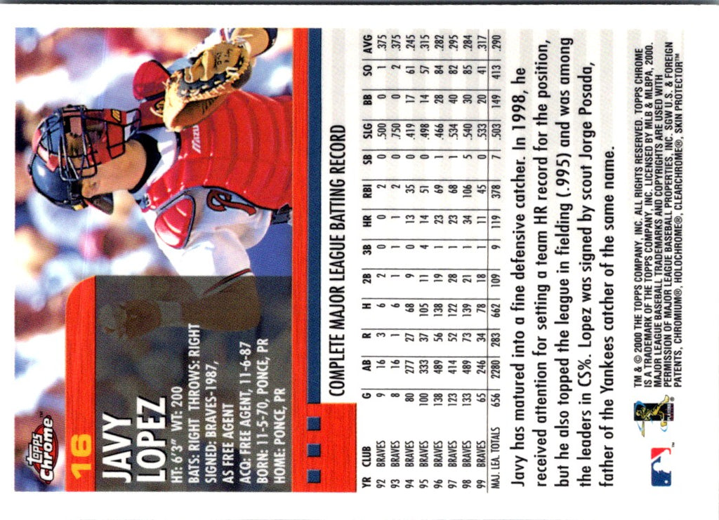 Description: 2000 Topps Javy Lopez #16