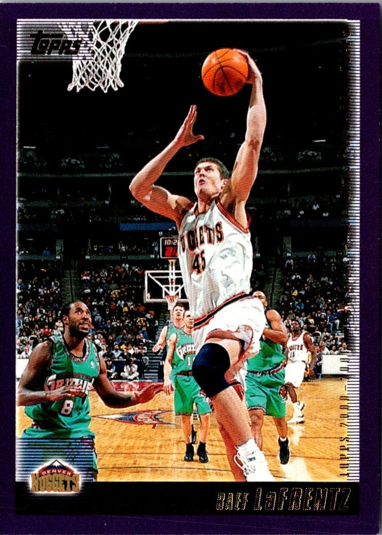 This 2000 Topps Raef LaFrentz #97 Denver Nuggets card is a must-have for any basketball card collector. Featuring a professional action shot of LaFrentz in his Denver Nuggets jersey, this card is a great piece of memorabilia. It is printed on high-quality card stock and is sure to last for years to come. Get your hands on this card while you can and add a valuable piece to your collection!