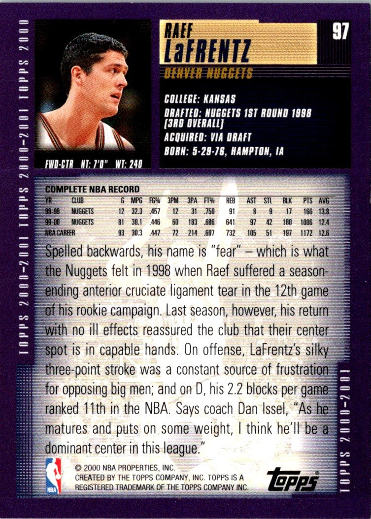 2000 Topps Raef LaFrentz #97