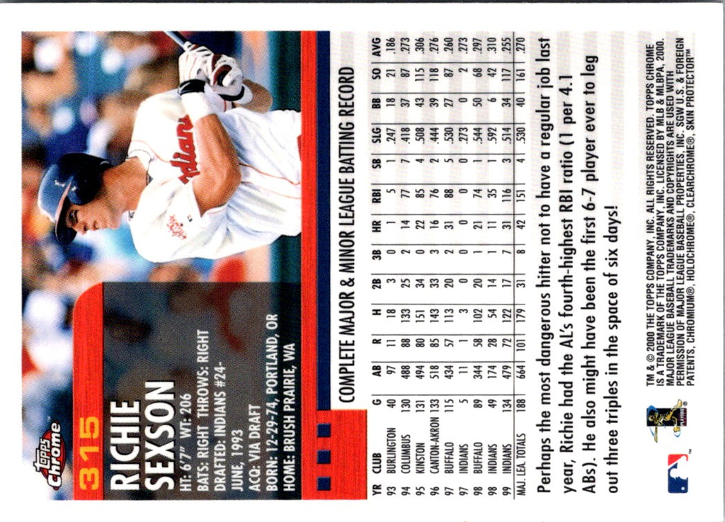 Description: 2000 Topps Richie Sexson #315