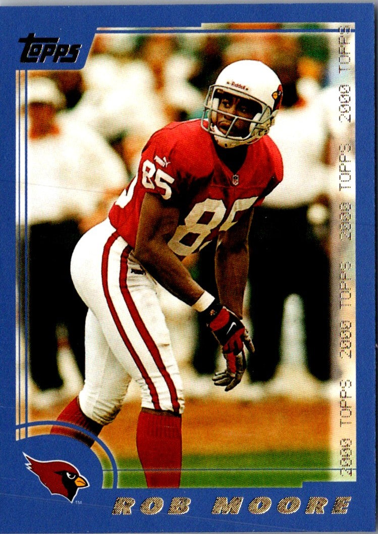 Rob Moore was a wide receiver for the Arizona Cardinals from 2000-2002. His 2000 Topps NFL Football card #132 captures him in mid-play, wearing his traditional red and white jersey. The card contains detailed stats from the 1999 season and includes his photo, team logo, and other information. The card is perfect for any Cardinals fan or collector looking to add an interesting piece to their collection. It's a must-have for any Rob Moore fan!