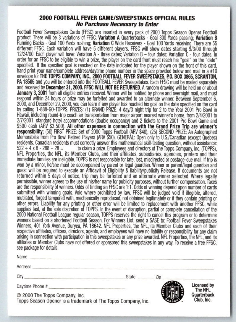 Product: Topps Season Opener Football Fever