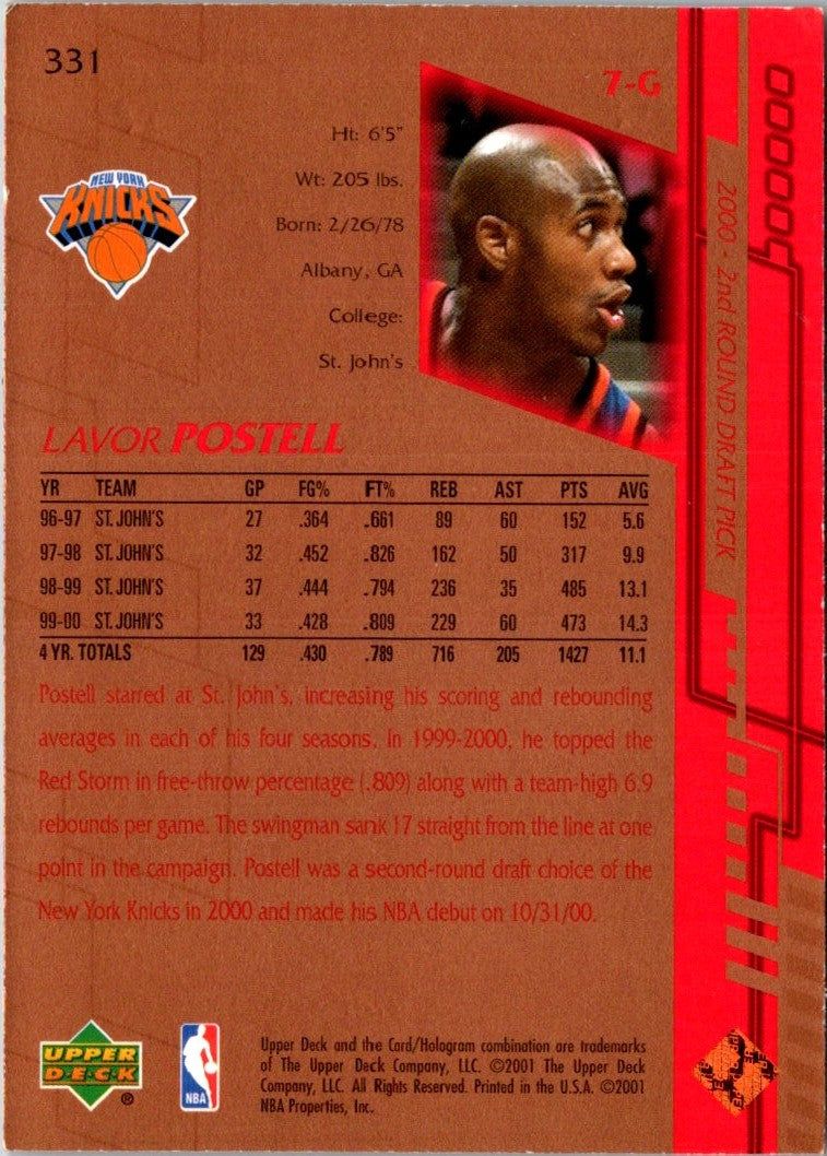 Description: 2000 Upper Deck Lavor Postell #331