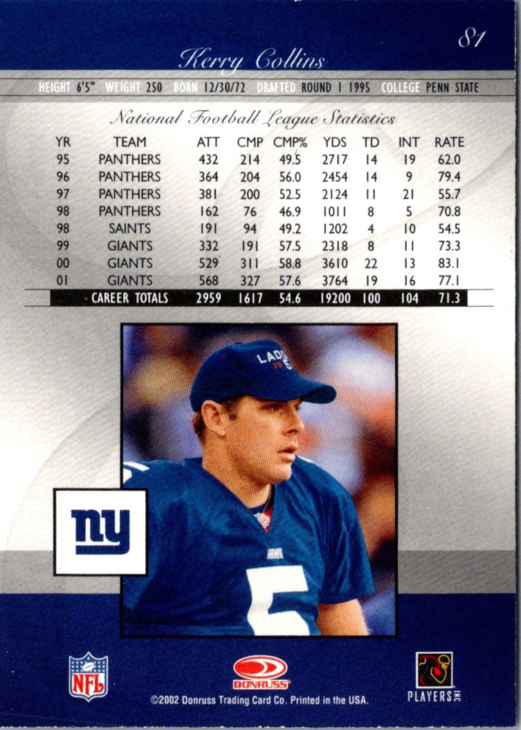 2002 Donruss Elite Kerry Collins #81