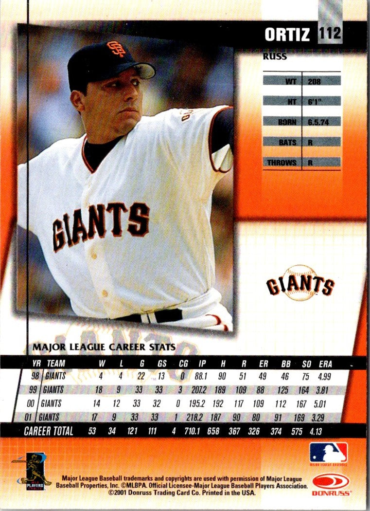 Description: 2002 Donruss Fan Club Russ Ortiz #112