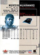 The 2002 Fleer Box Score Muhsin Muhammad #37 Carolina Panthers is the perfect addition to any football collection. This card features a colorful image of Muhammad in his Carolina Panthers uniform, and detailed stats from the 2002 season. This card is sure to become a classic and an essential piece of Panthers history. Add it to your collection today and start building your memorabilia collection of the Panthers' most beloved players.
