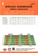 This 2002 Fleer Brian Simmons #2 Cincinnati Bengals card is a must-have for any football fan! This card features a stunning photo of Simmons in his Bengals uniform, as well as his career stats and team logo. This card is sure to be a great addition to any collection, and will be a great way to show your support for the Bengals!