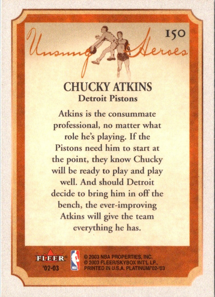Description: 2002 Fleer Platinum Chucky Atkins #150