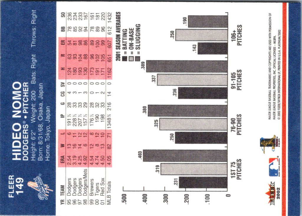 Description: 2002 Fleer Platinum Hideo Nomo #149