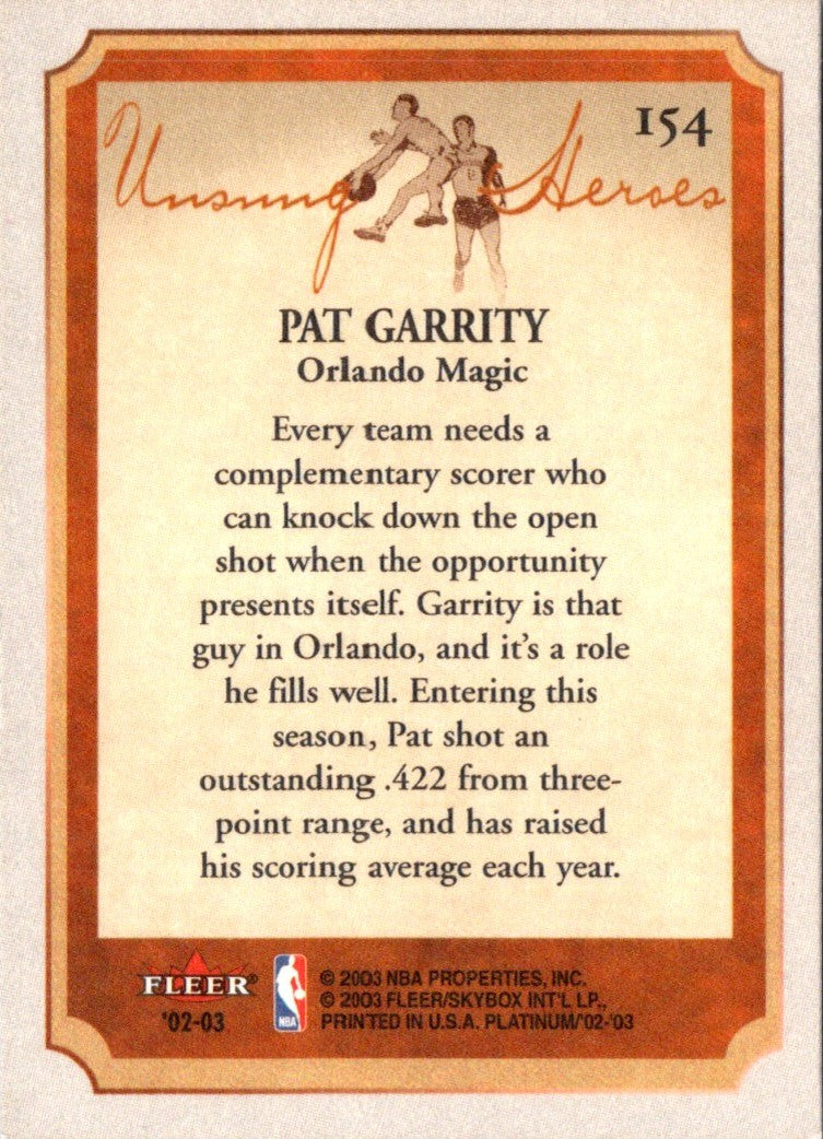 Description: 2002 Fleer Platinum Pat Garrity #154