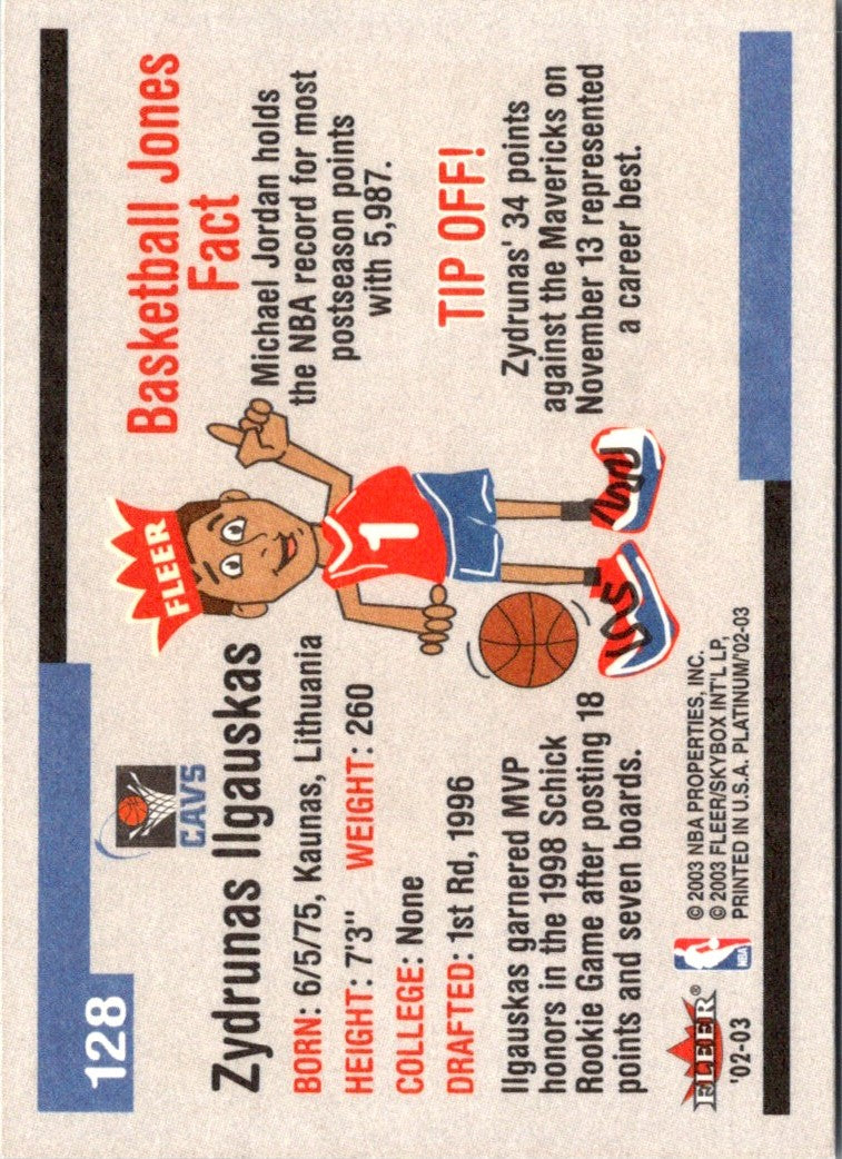 Description: 2002 Fleer Platinum Zydrunas Ilgauskas #128