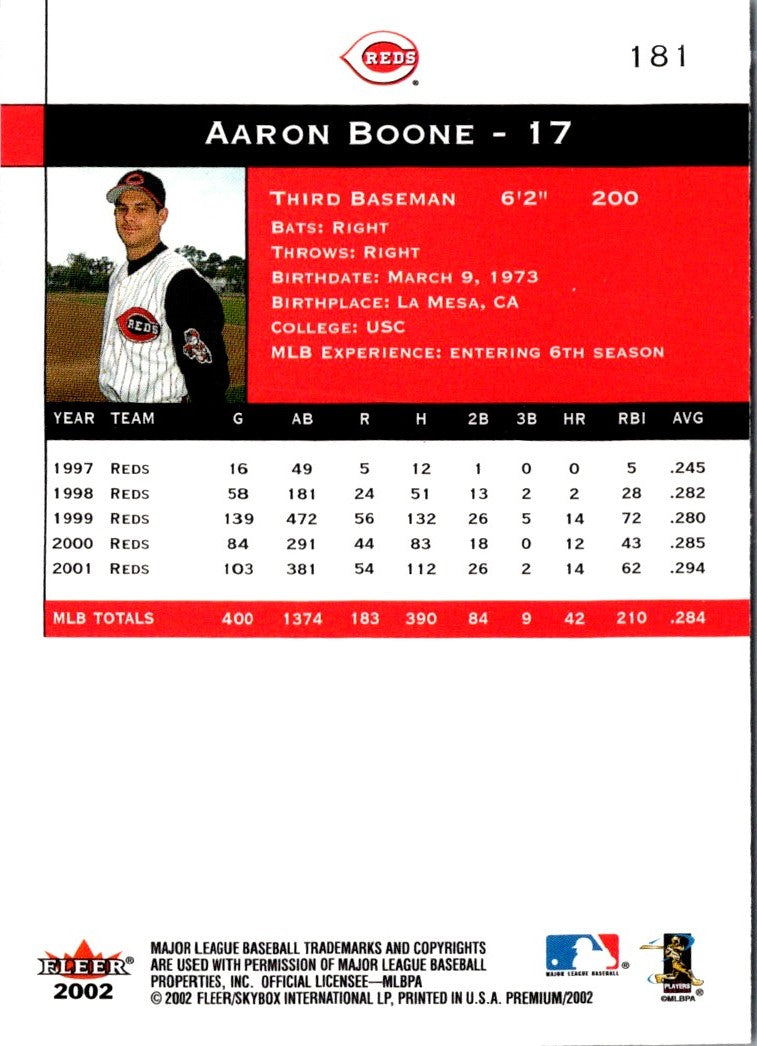 This 2002 Fleer Premium Aaron Boone #181 Cincinnati Reds card is in near-mint condition and features an action photo of the third baseman in his signature batting stance. It’s a must-have for any Reds fan, as the card captures the glory of Boone’s first season with the team. His career stats are also included on the back, along with highlights from his MLB career. Add this card to your collection to commemorate Aaron Boone’s incredible career with the Reds.