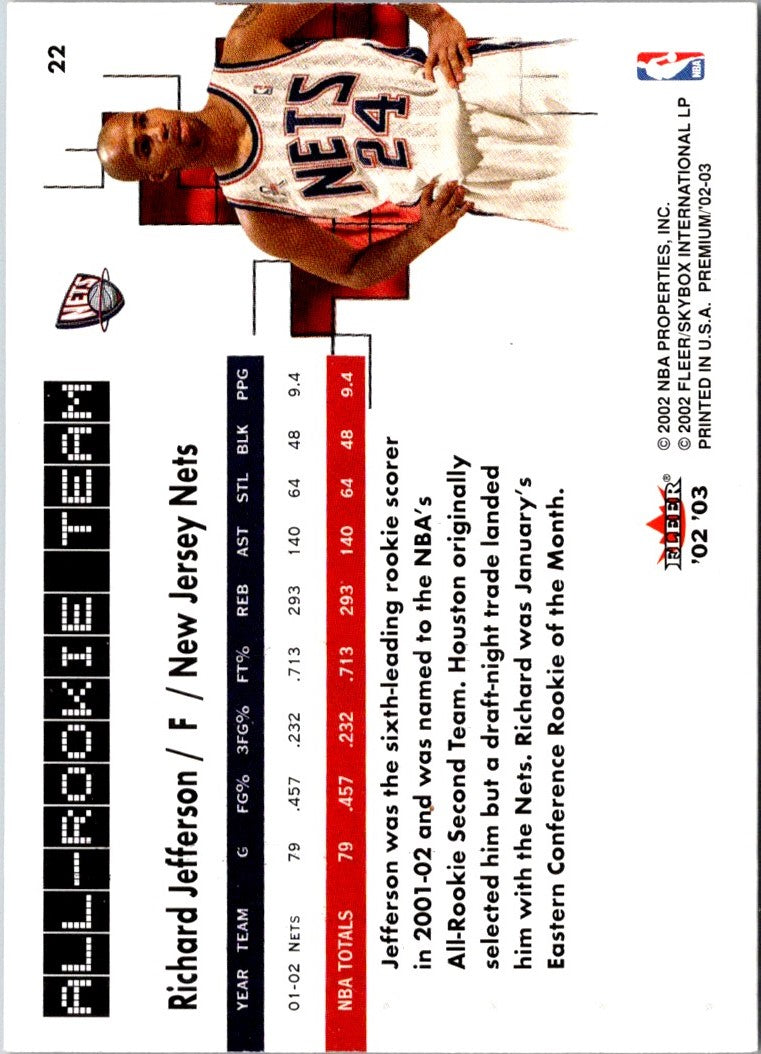 Description: 2002 Fleer Premium Richard Jefferson #22