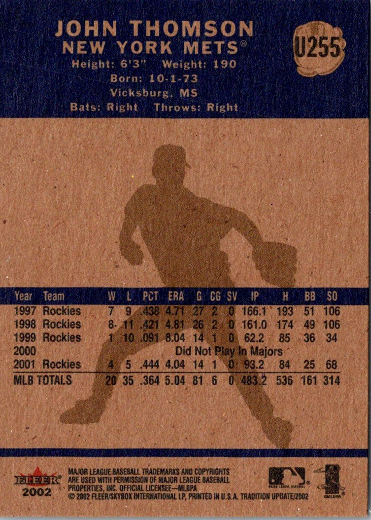 2002 Fleer Tradition Update John Thomson #U255