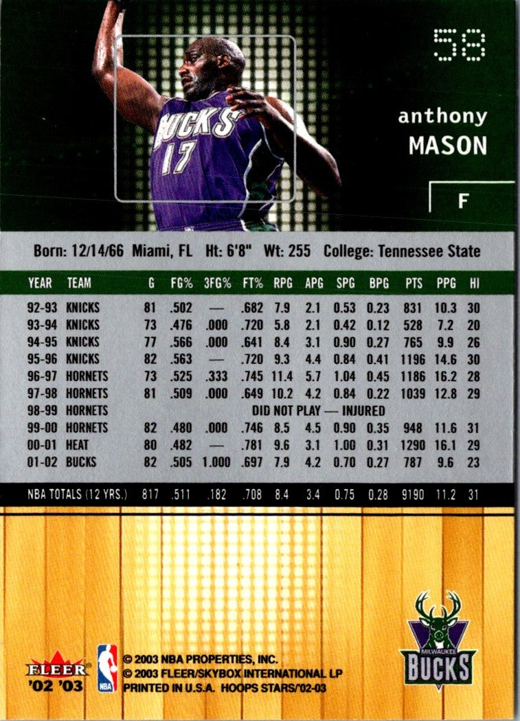 This authentic 2002 Hoops Stars Anthony Mason #58 Milwaukee Bucks jersey is the perfect way to show your support for the Bucks and your favorite player. Made from quality polyester fabric, this jersey features vibrant colors, bold graphics, and a classic design. It is designed to keep you comfortable and cool, while its lightweight construction makes it an ideal choice for any basketball fan. Whether you’re at the game or in your living room, this jersey will make you feel like you’re part of the action. Show your support for Anthony Mason and the Bucks with this classic jersey today!