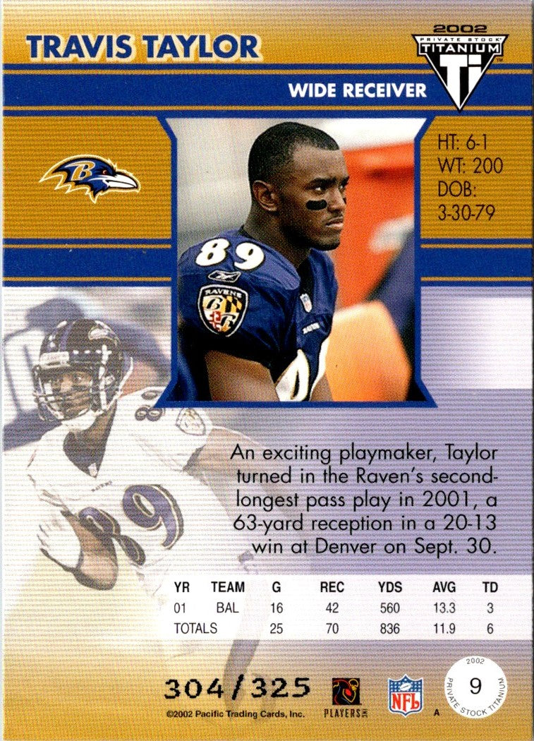2002 Pacific Private Stock Titanium Travis Taylor #9