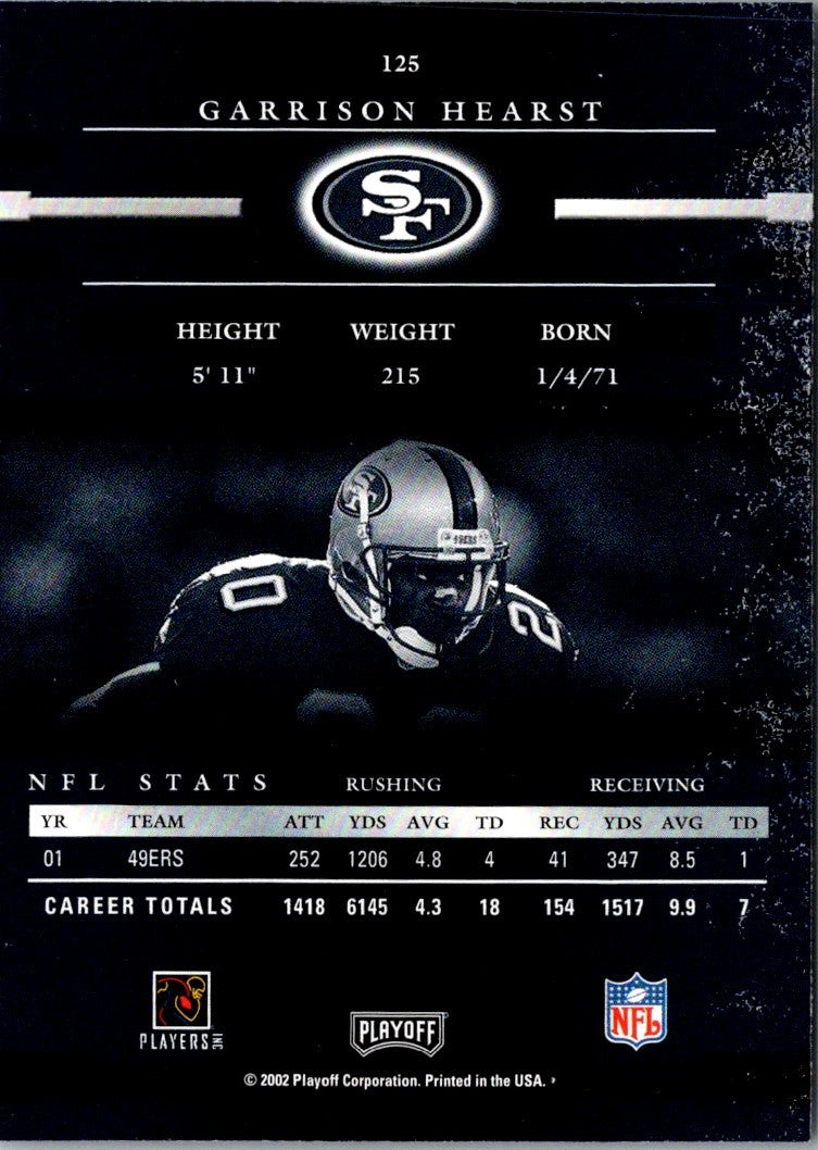 This 2002 Playoff Prestige Garrison Hearst #125 card from the San Francisco 49ers is a great collectible for any football fan. Featuring a full-color action shot, this card will make an eye-catching addition to any collection. Hearst was an integral part of the 49ers offense for several years, and his career was highlighted by a Pro Bowl appearance in 1998. Add this card to your collection today and commemorate the career of one of the greatest 49ers of all-time.