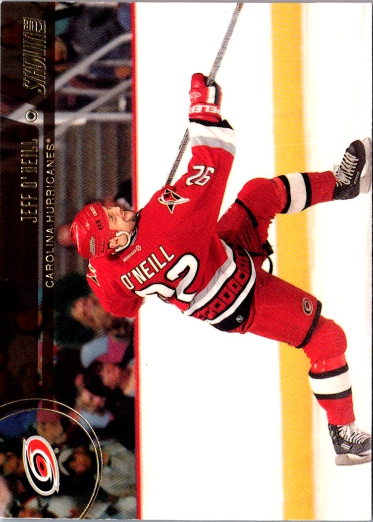 This 2002 Stadium Club Jeff O'Neill #32 Carolina Hurricanes card is a must-have for any Hurricanes fan or collector. The card features a great action shot of O'Neill wearing his Hurricanes jersey and is in mint condition. With a glossy finish and vibrant colors, this card is sure to stand out in any collection. It's also a great way to commemorate O'Neill's time in Carolina and show your support for the team. Get your hands on this card today and add it to your collection!
