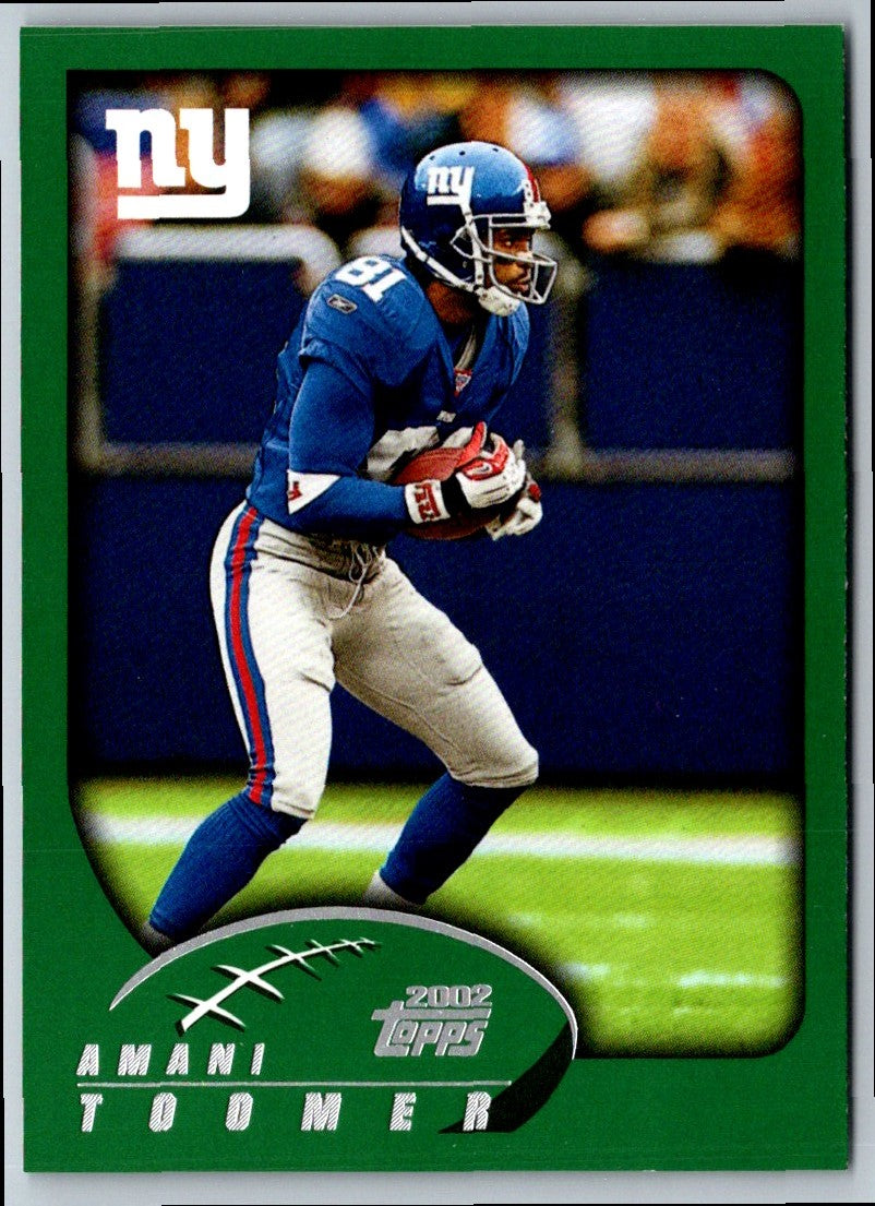 2002 Topps Amani Toomer #20 New York Giants is the perfect card for any Giants fan! Featuring a crisp image of Toomer in a Giants uniform, this card captures the essence of the legendary wide receiver. It's a must-have item for any New York Giants collection. The card is professionally printed on high-quality card stock with a glossy finish, ensuring that it will remain in pristine condition for years to come. Add this card to your collection today and show your support for the Big Blue!